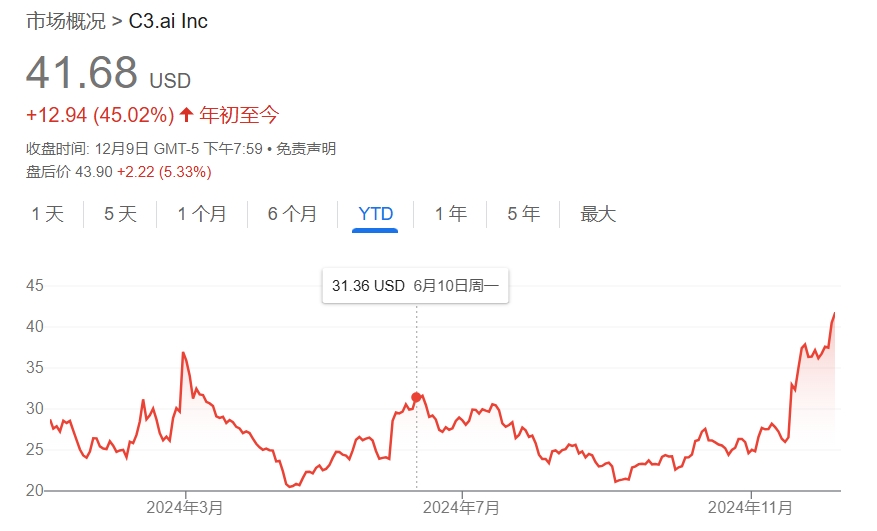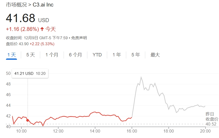 AI软件公司C3.ai季度功绩优于市集预期,同期晓示与微软达成政策互助,公司股价盘后一度涨超16%,现在回落至5%。