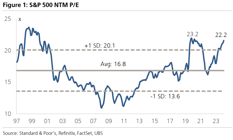 12月9日,瑞银计策分析师Jonathan Golub尽头团队发布讲明称,好意思股阛阓的估值如实偏高,但算不上过高,面前,好意思国经济的衰败风险已被抑制,瞻望标普500指数的市盈率在2025年会不时上升。
