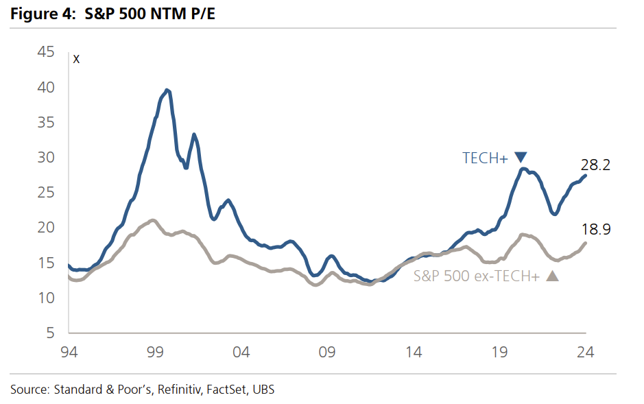 瑞银暗示,30年前,在互联网营业化之前、智妙手机出身之前,科技公司在标普500指数中的市值仅占为10%,而如今,这一比例还是增长至40%。在这一排变历程中,比拟其他类型的公司,科技公司的收入增长更快,利润率也更高——自关连词然地,好意思国阛阓的举座估值出现了上升。